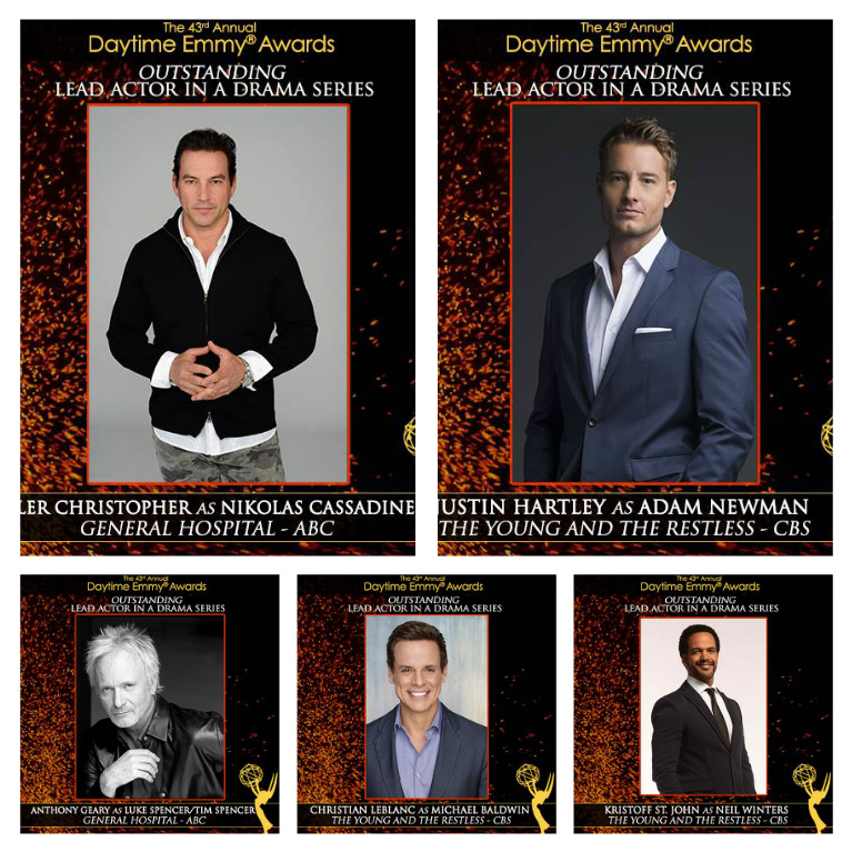 The 43rd Annual Daytime Creative Arts Emmy Awards ceremony was held on Friday, April 29 at the Westin Bonaventure Hotel and Suites in downtown Los Angeles. The Young and the Restless led the way in the daytime drama categories, picking up 5 awards. General Hospital was next with 4. Indie soap The Bay won three Emmys, including being named Outstanding Digital Daytime Drama Series for the second year in a row.